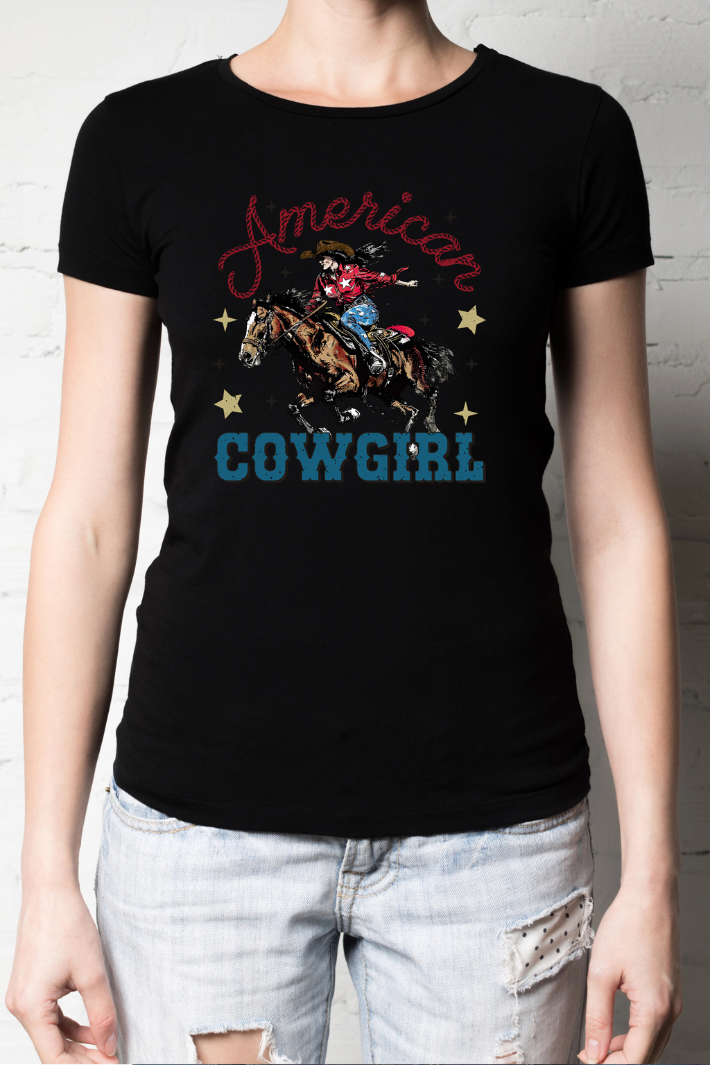 Laat je passie voor country zien met dit unieke American Cowgirl shirt! Ontdek de ziel van het Wilde Westen met de collectie country-shirts van T-shirtfountain.nl. Laat je innerlijke cowboy of cowgirl naar voren komen met onze authentieke ontwerpen. Ze zijn geïnspireerd door de uitgestrekte vlaktes, evenals de ongerepte natuur en de rijke tradities van het Amerikaanse platteland. Laat je passie voor countrymuziek zien met onze unieke t-shirts, die niet alleen stijlvol zijn, maar ook een verhaal vertellen. Wij hebben voor elk wat wils. Of je nu op zoek bent naar een shirt voor een avondje dansen, een casual look voor overdag, of gewoon een eerbetoon aan je favoriete countryhelden. Dus trek je laarzen aan, zet je cowboyhoed op en omarm het gevoel van vrijheid en avontuur met onze country en western geïnspireerde t-shirt designs.