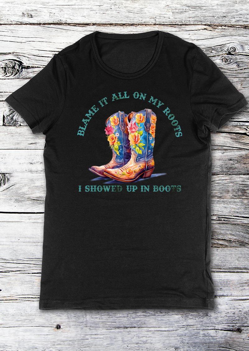 Laat je passie voor countrymuziek zien met dit unieke Blame it all on my Roots (songtekst) shirt! Ontdek de ziel van het Wilde Westen met de collectie country-shirts van T-shirtfountain.nl. Laat je innerlijke cowboy of cowgirl naar voren komen met onze authentieke ontwerpen.