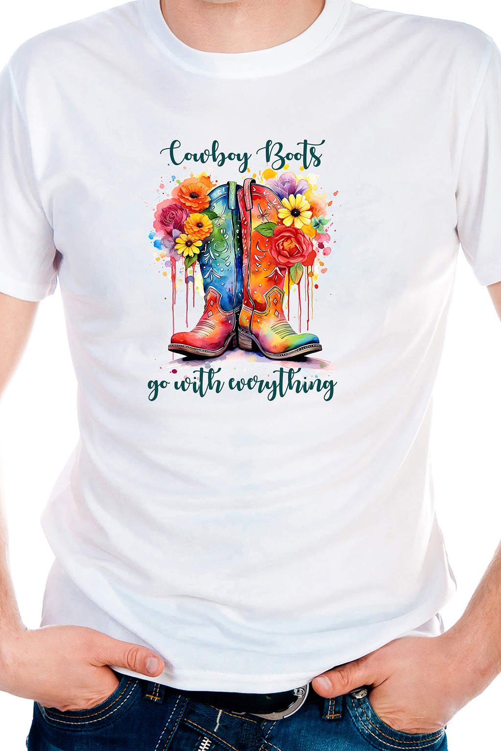 Laat je passie voor countrymuziek zien met dit unieke Cowboy Boots Go with everything shirt! Ontdek de ziel van het Wilde Westen met de collectie country-shirts van T-shirtfountain.nl. Laat je innerlijke cowboy of cowgirl naar voren komen met onze authentieke ontwerpen.