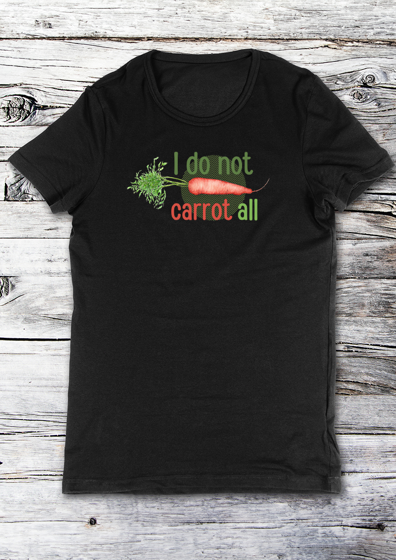 Stap binnen in de smakelijke wereld van culinaire genoegens met dit exclusieve I do not carrot all t-shirt, verkrijgbaar bij T-shirtfountain.nl! Verken een feest van artistieke ontwerpen die de heerlijke diversiteit van eten en drinken vangen. Onze shirts zijn allemaal vervaardigd van duurzaam eco-katoen, waardoor je niet alleen stijlvol, maar ook milieubewust kunt zijn.