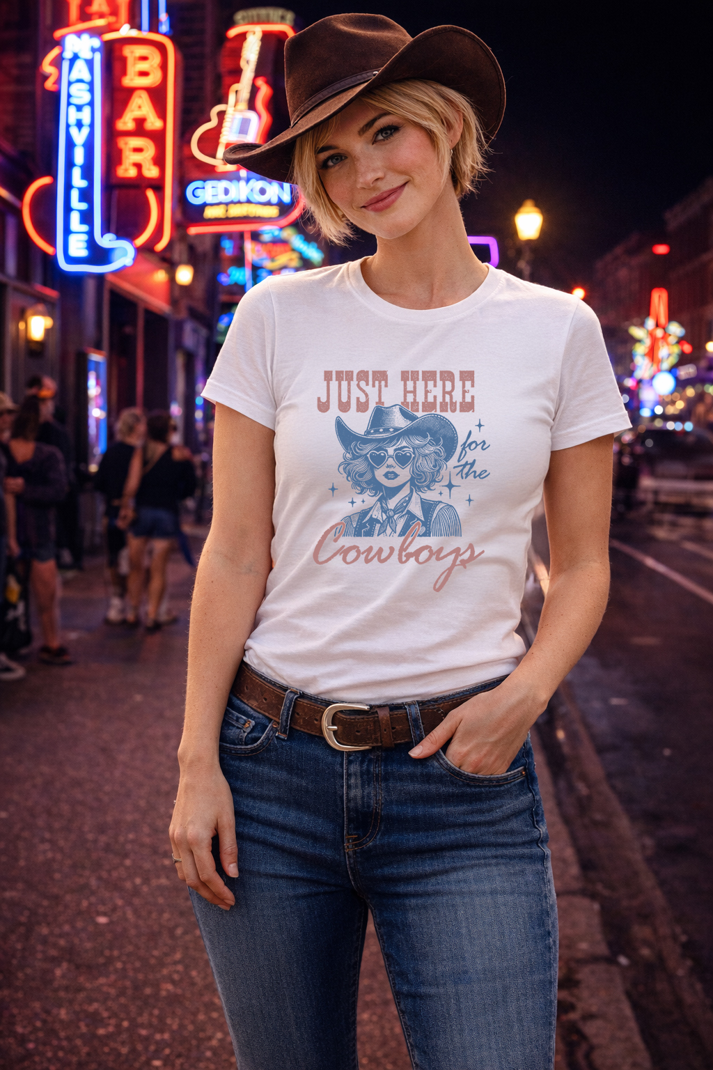 Laat je passie voor cowgirls zien met dit unieke Just here for the Cowboys! Ontdek de ziel van het Wilde Westen met de collectie country-shirts van T-shirtfountain.nl. Laat je innerlijke cowboy of cowgirl naar voren komen met onze authentieke ontwerpen.