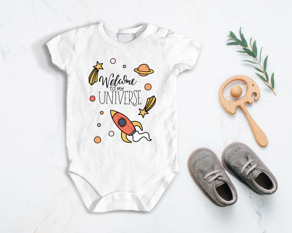 Bent u op zoek naar schattige en comfortabele babykleding die ook de persoonlijkheid en stijl van uw kleintje weerspiegelt, dan is dit ‘Welcome to the Universe’ ontwerp iets voor jou! Bij T-shirtfountain.nl vindt u precies wat u zoekt! Ontdek onze uitgebreide collectie babykleding met unieke ontwerpen die u nergens anders zult vinden. Of u nu houdt van vrolijke grafische prints, lieve illustraties, of inspirerende quotes, wij hebben voor elke baby iets speciaals.