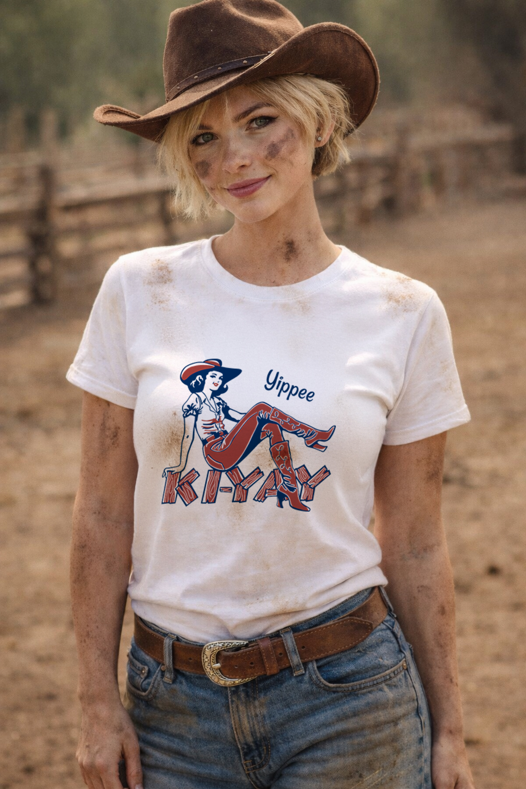Laat je passie voor cowgirls zien met dit unieke Yippee Ki-Yay shirt! Ontdek de ziel van het Wilde Westen met de collectie country-shirts van T-shirtfountain.nl. Laat je innerlijke cowboy of cowgirl naar voren komen met onze authentieke ontwerpen.